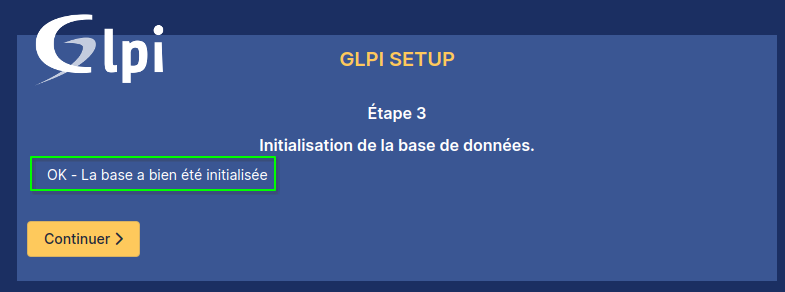 Après avoir cliqué sur "Continuer" l'assistant initialise la base de données